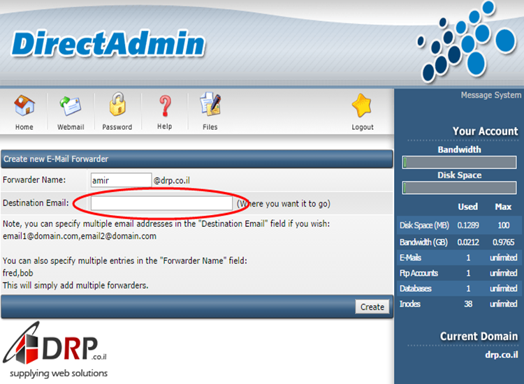 3. בשדה הראשון נרשום את הכתובת שאנחנו רוצים להפנות ממנו את המייל.