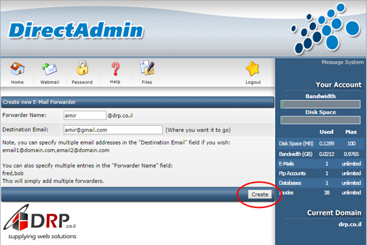 5. בסיום מילוי הכתובות נלחץ על Create.