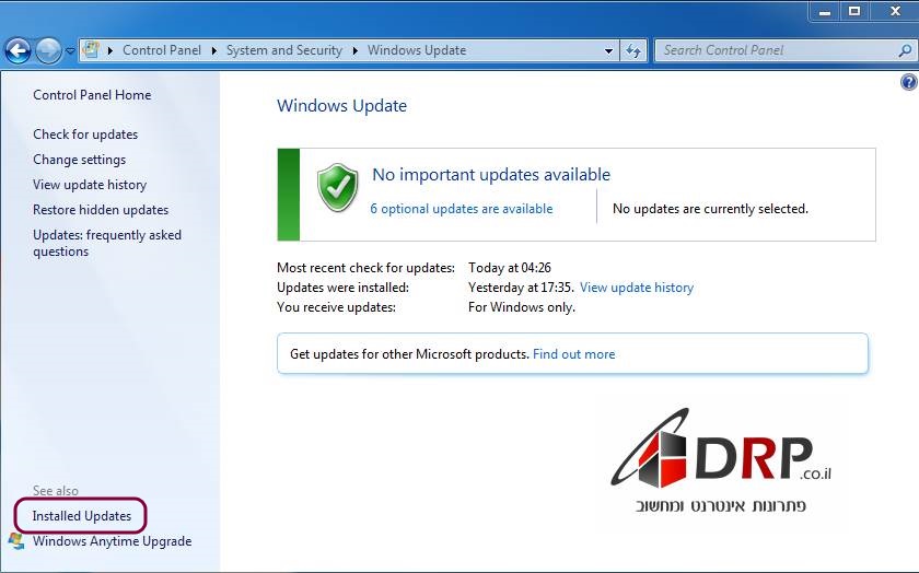 3. אחר כך על Installed Updates
