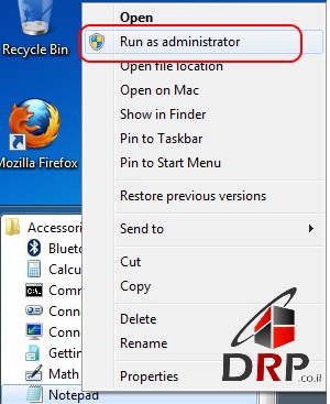 1. יש להריץ את התוכנה Notepad תחת משתמש Administrator