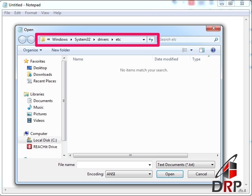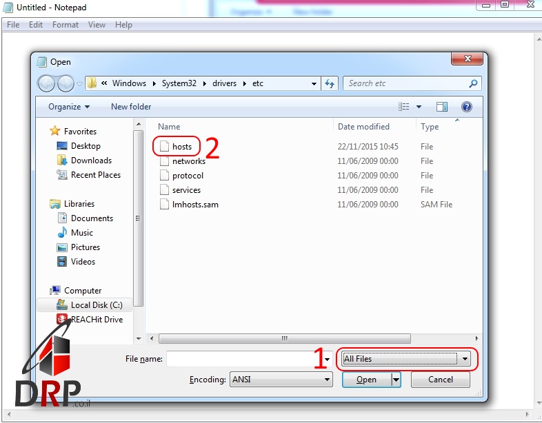 לאחר שינוי סוג הקבצים, תוכלו לפתוח את קובץ Hosts.